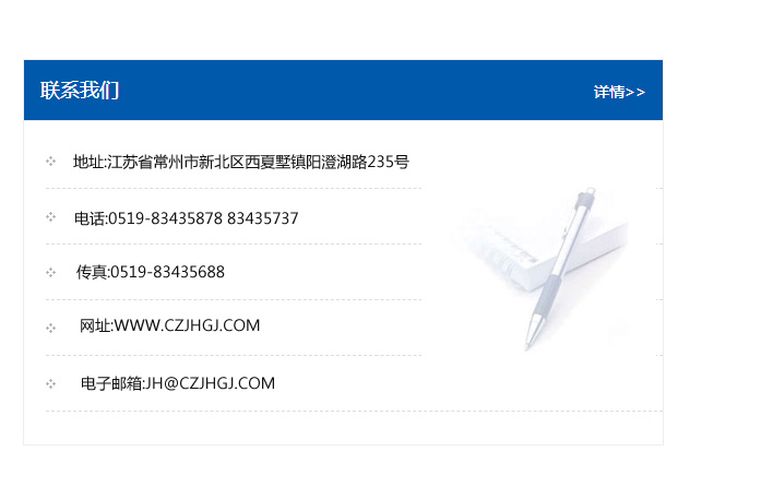 傳真:0519-83435688    郵編:213135    網址:WWW.czjhgj_com.chushangsuo.com    電子郵箱:JH@czjhgj_com.chushangsuo.com